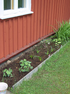Vad skall man säga om helgen som var? Sol, sol och åter sol, bad i skogssjö, goda vänner på besök, utemiddagar, fasadmålning, trädgårdspyssel, myggbett, varma nätter. Utplantering av det som drivits upp från frö hemma, bl.a. luktärter och slingerkrasse. Lätt vånda över torkan, kanske jag skulle ha planterat färre buskar som behöver stödvattnas på samma gång... Rosenkvitten, ny favorit, får vänta tills nästa år.